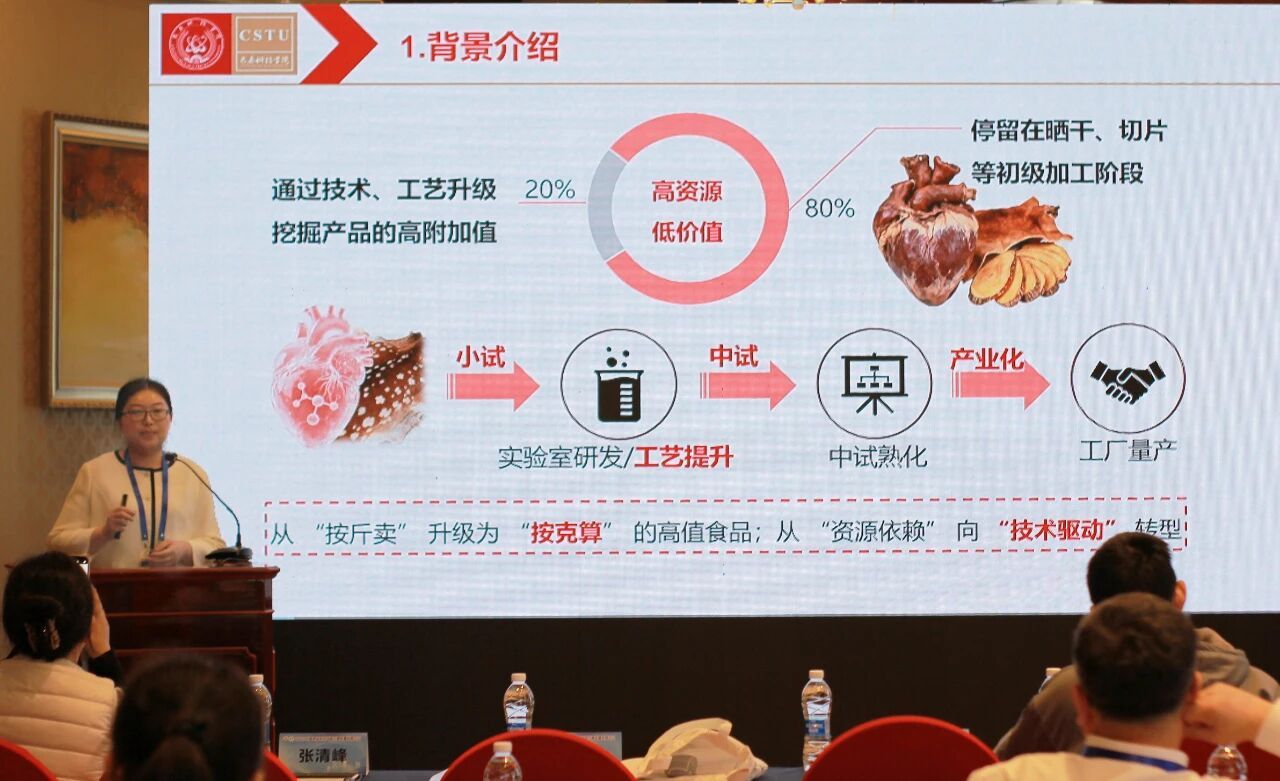 11月29日,在 “功能食品健康因子挖掘与保健食品开发创新” 分论坛中,唐玉娇教授以《鹿副产品精深加工驱动功能食品产业高质量发展 —— 产学研的应用转化实践》为题作学术汇报,详细介绍鹿副产品精深加工的核心技术、功能活性成果及产学研转化路径,为功能食品产业高质量发展提供实操性方案。