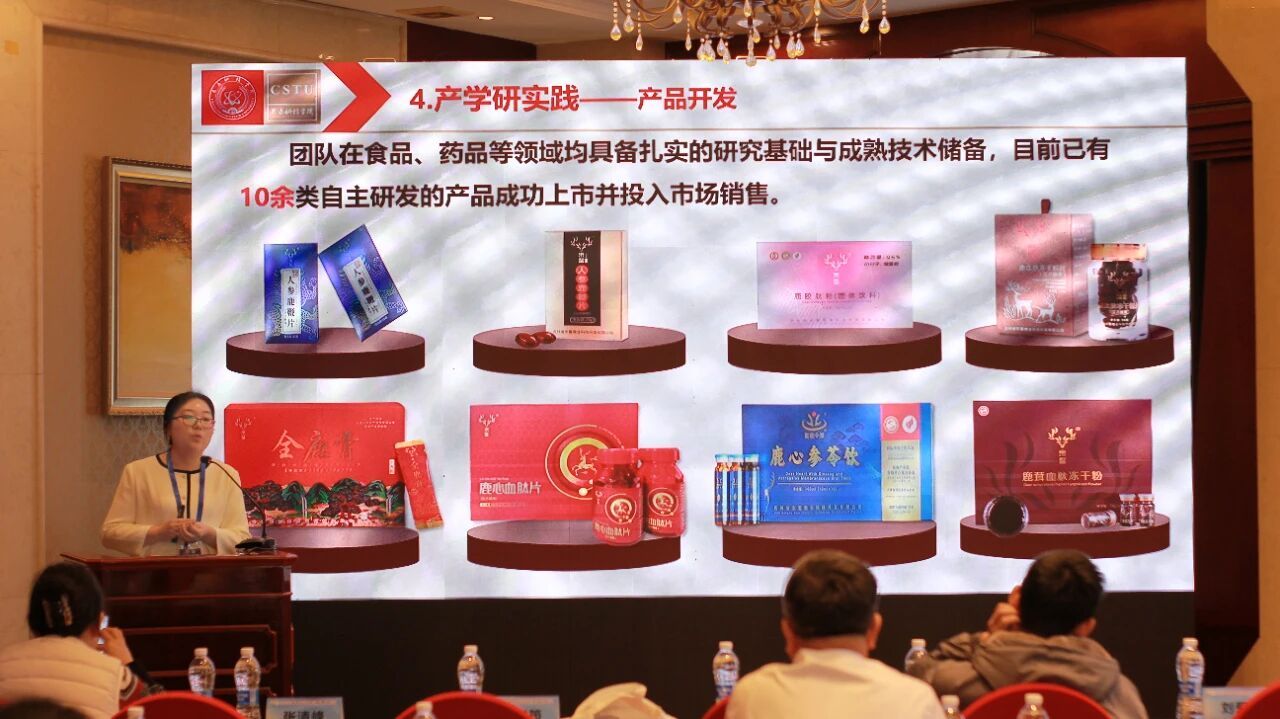 汇报还分享了产学研融合的实践成果:基于核心技术开发的鹿胶肽粉、鹿心血肽片等产品成功上市。同时通过技术输出与标准共建,推动鹿产业从 “资源依赖” 向 “技术驱动” 转型,实现产品从 “按斤卖” 到 “按克算” 的高值化升级,为功能食品产业产学研协同发展提供了可复制的实践样本。